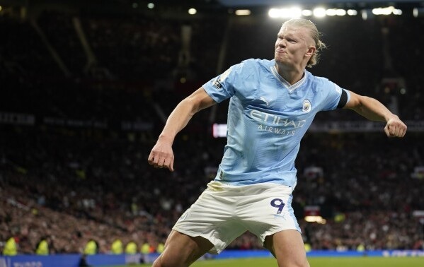 Manchester City’s Erling Haaland struck his first two goals at Old Trafford as they ran over Manchester United in a 3-0 thrashing in a heated English Premier League derby.