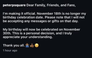 After a relatively quiet spell from the iconic duo Psquare, one half of the group, Peter Okoye, has found a way to get people talking again, and this time, it has nothing to do with music. In a rather unexpected move, Peter took to Instagram to announce a personal change: his birthday.